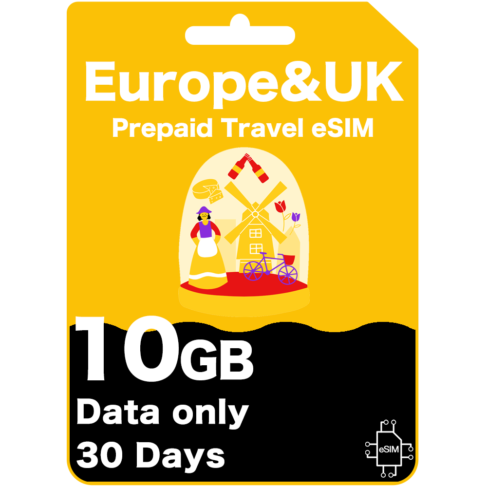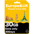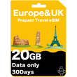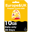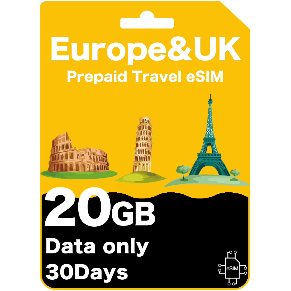 Tarjeta eSIM de Viaje Prepago para Europa y Reino Unido