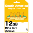 Carte SIM de voyage prépayée Pérou 12 Go 30 jours