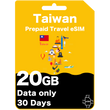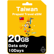 *Les forfaits 10GB et 20GB nécessitent un enregistrement par nom réel (real-name registration) à votre arrivée à Taïwan.
