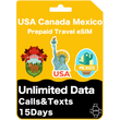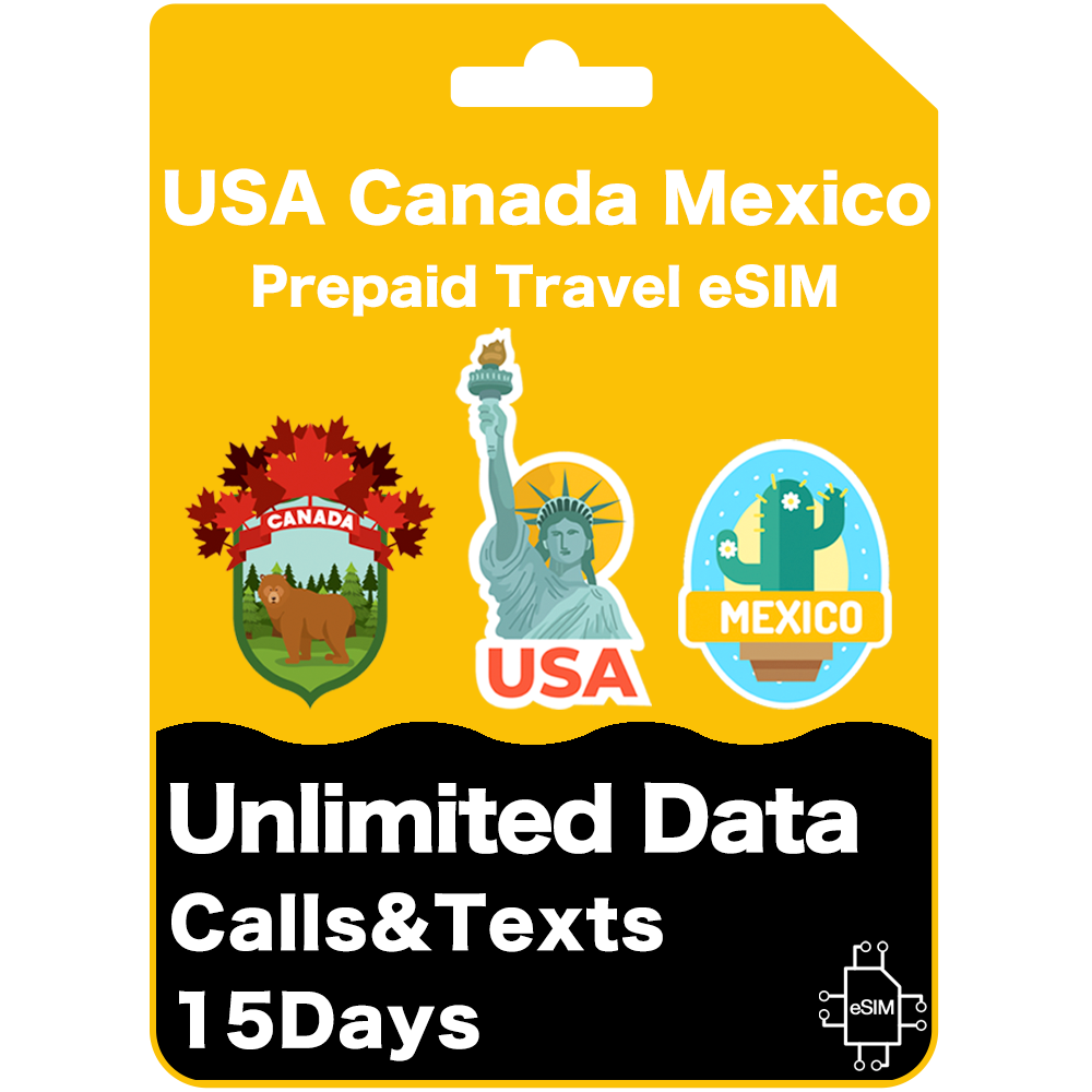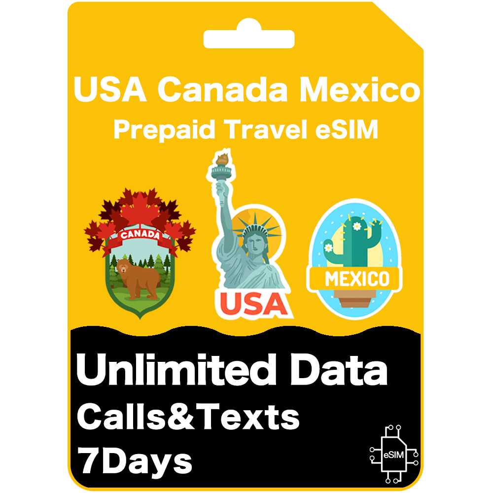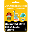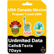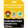 Carte eSIM de voyage prépayée aux États-Unis, au Canada et au Mexique Données illimitées 30 jours - AT&T