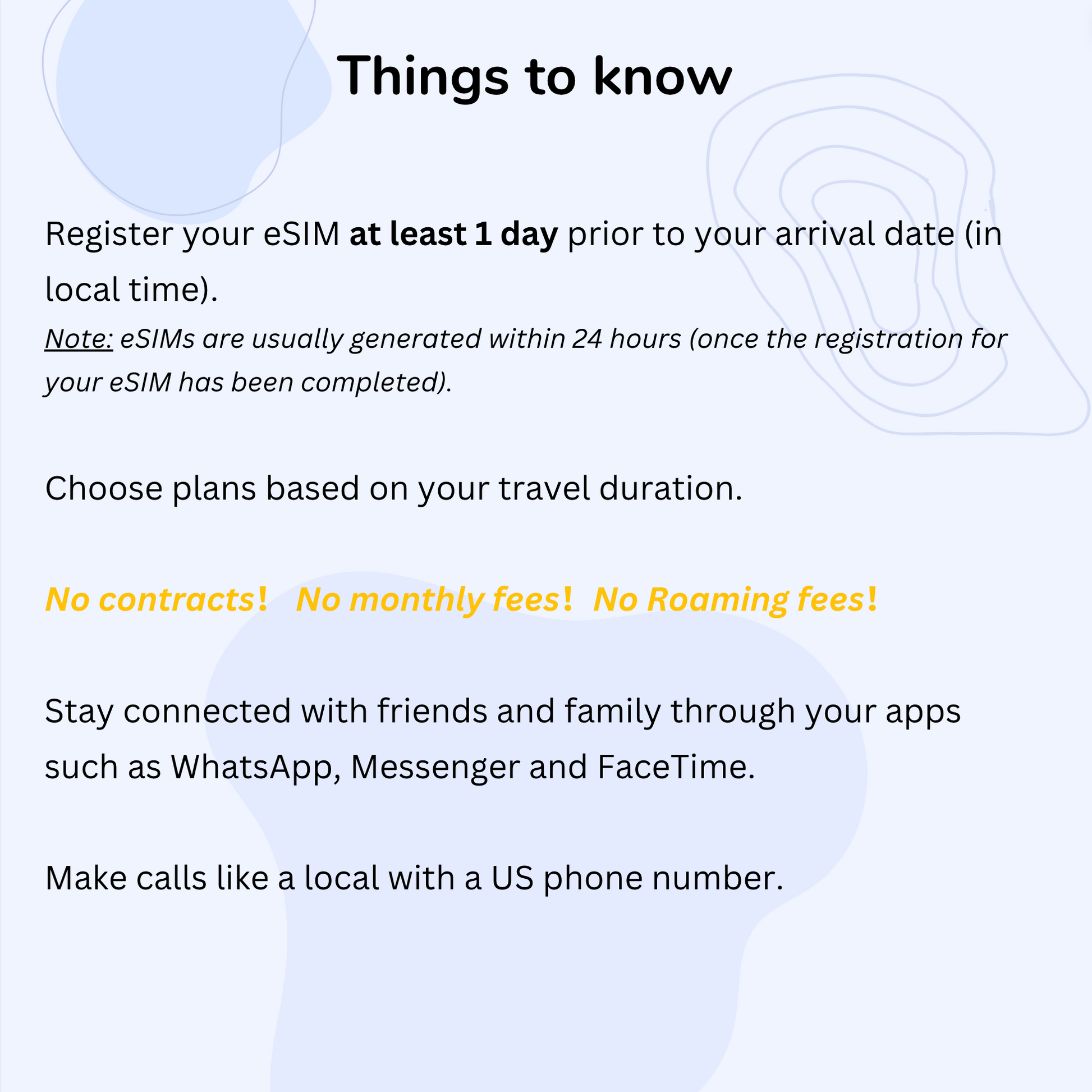 - Aucun retour ni remboursement si la carte eSIM a déjà été activée.