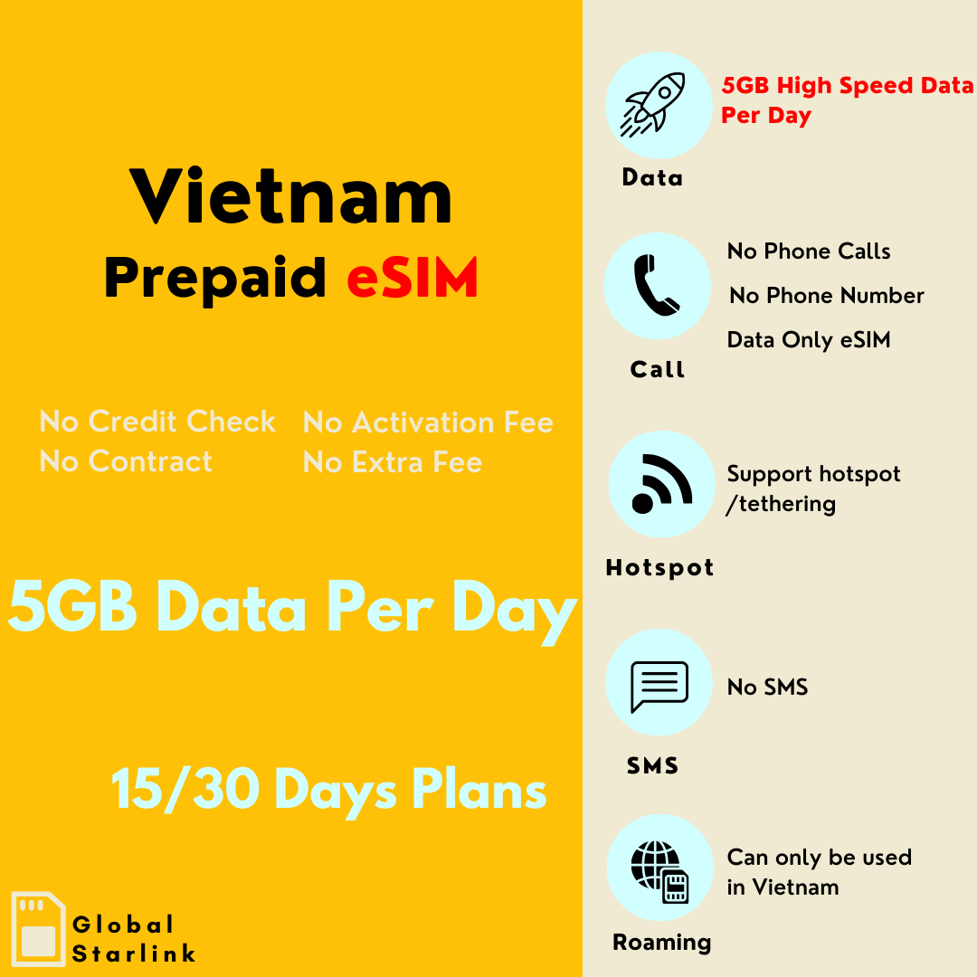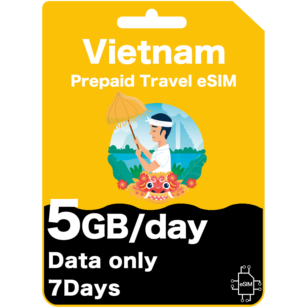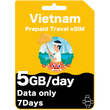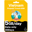 Carte eSIM de voyage prépayée au Vietnam 5 Go par jour 15 jours - Viettel (données uniquement)